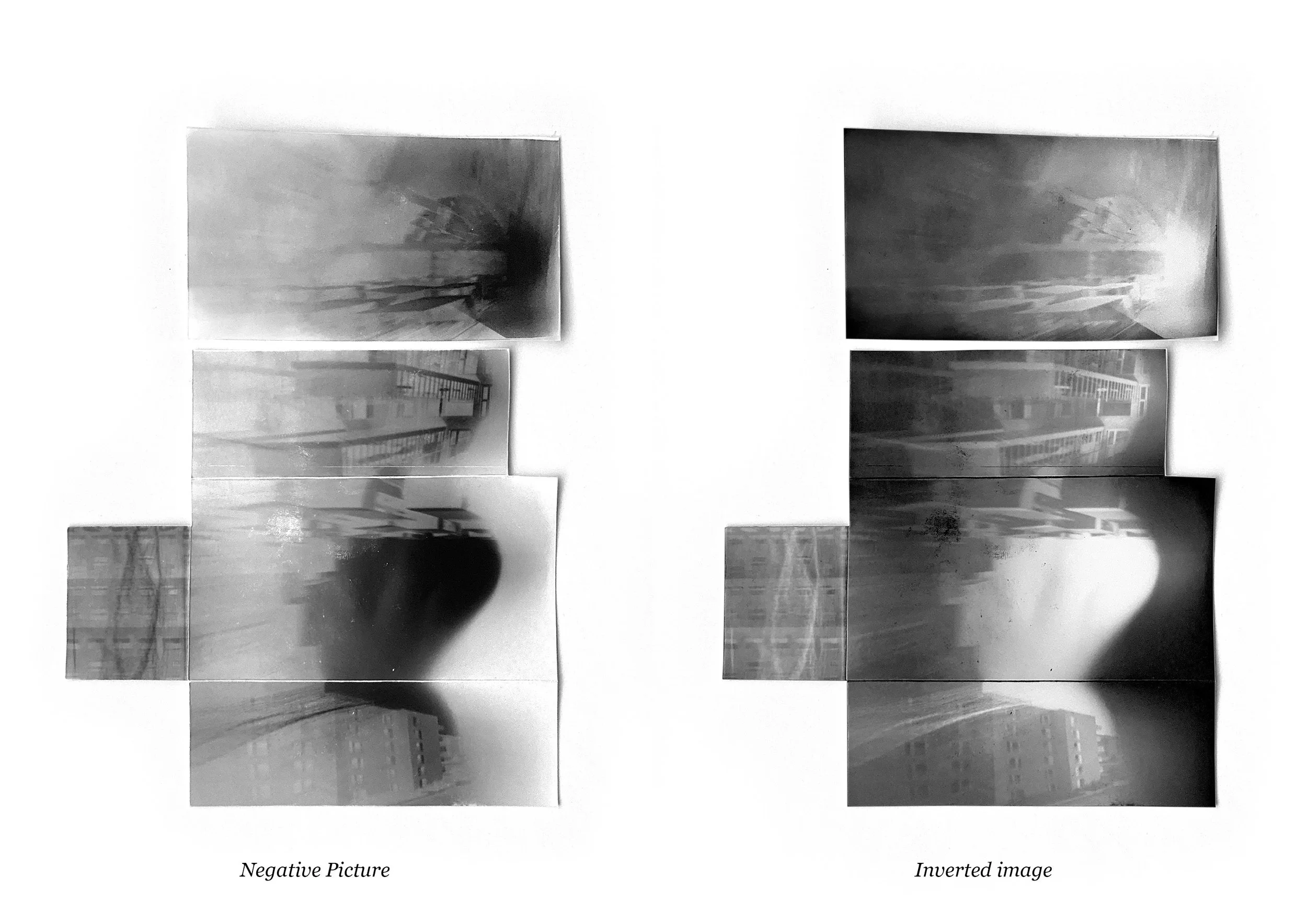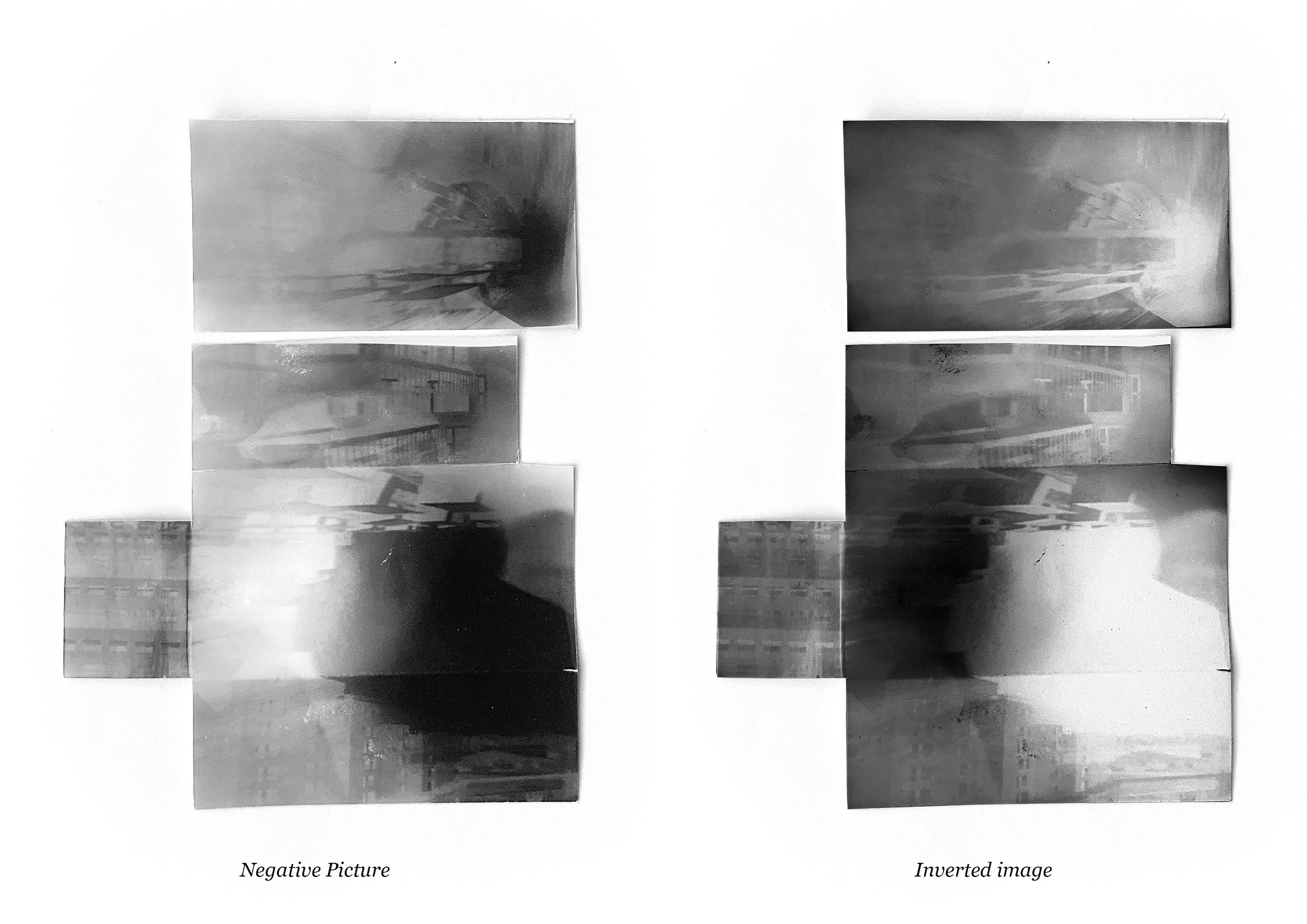For each picture, it’s necessary to place the paper blind folded in the camera To make sure the image is correctly printed on the paper, we took multiple shots with different time exposures (8–25 seconds).
